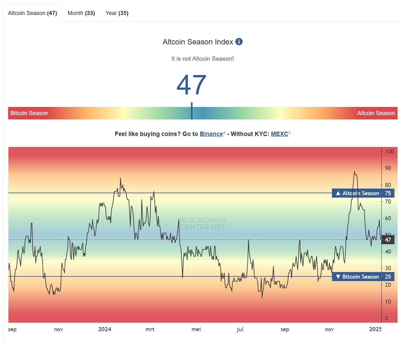- The Altseason Indicator has dropped below the 50 mark, signaling an accumulation opportunity for investors.