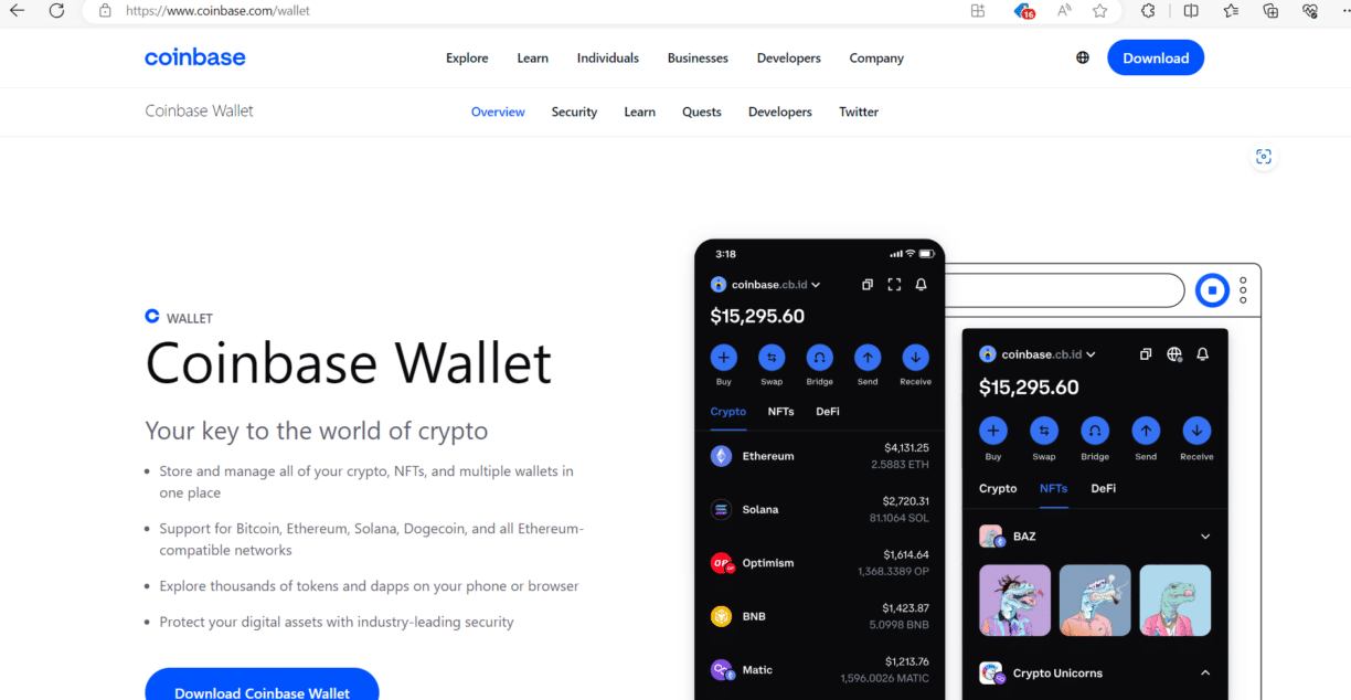 Coinbase Wallet:A wallet with support of NFTs and staking tools.