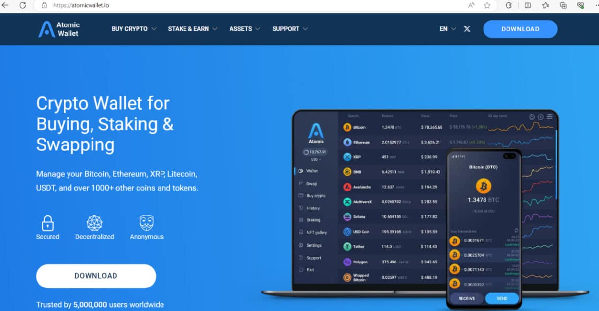 Atomic Wallet:The top Solana wallet that uses local validators for Solana storage.