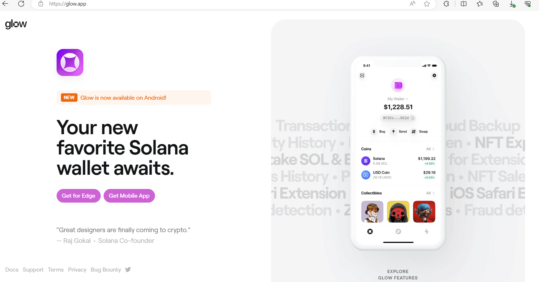 Glow is a popular Solana wallet because of the different storage services it provides for customers. Using your smartphone, you may save, transmit, receive, stake, and swap tokens directly on the Solana blockchain with Glow Wallet, a Solana cryptocurrency wallet. The self-custody wallet is incredibly user-friendly, with a built-in Safari connection, iCloud backups, several wallet integrations, and alerts.