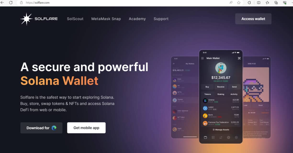 Solflare:One of the earliest wallets for the Solana ecosystem.
