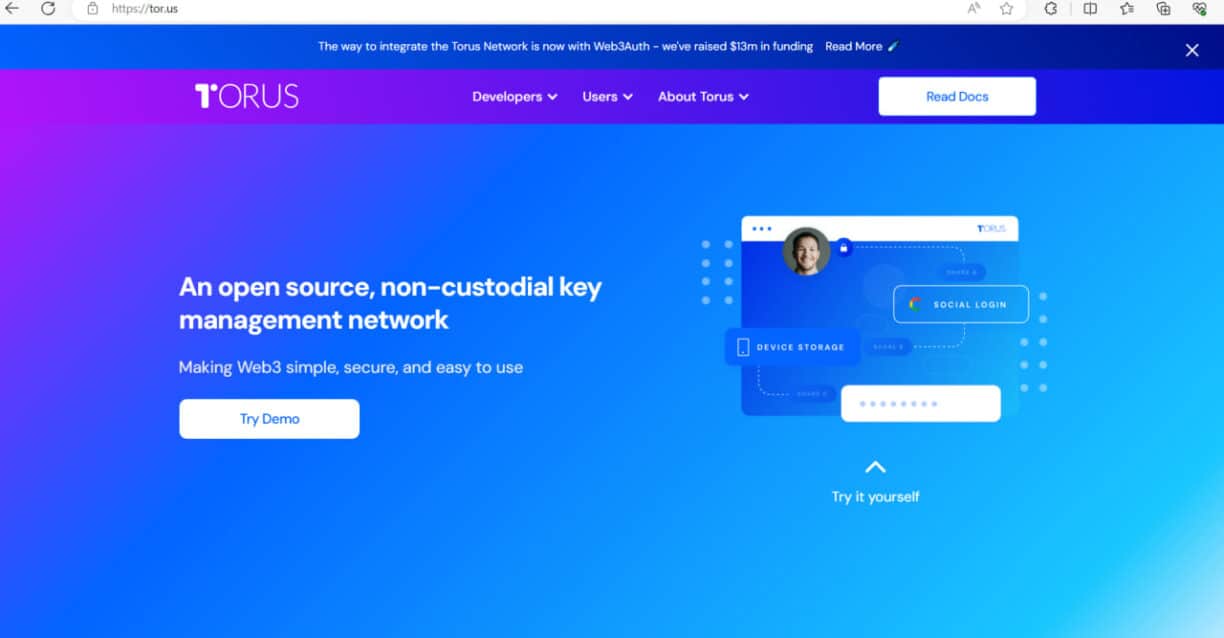 Torus is a software wallet that facilitates one-click login for Web 3.0 services such as cryptocurrency decentralized exchanges and NFT scaffolds.