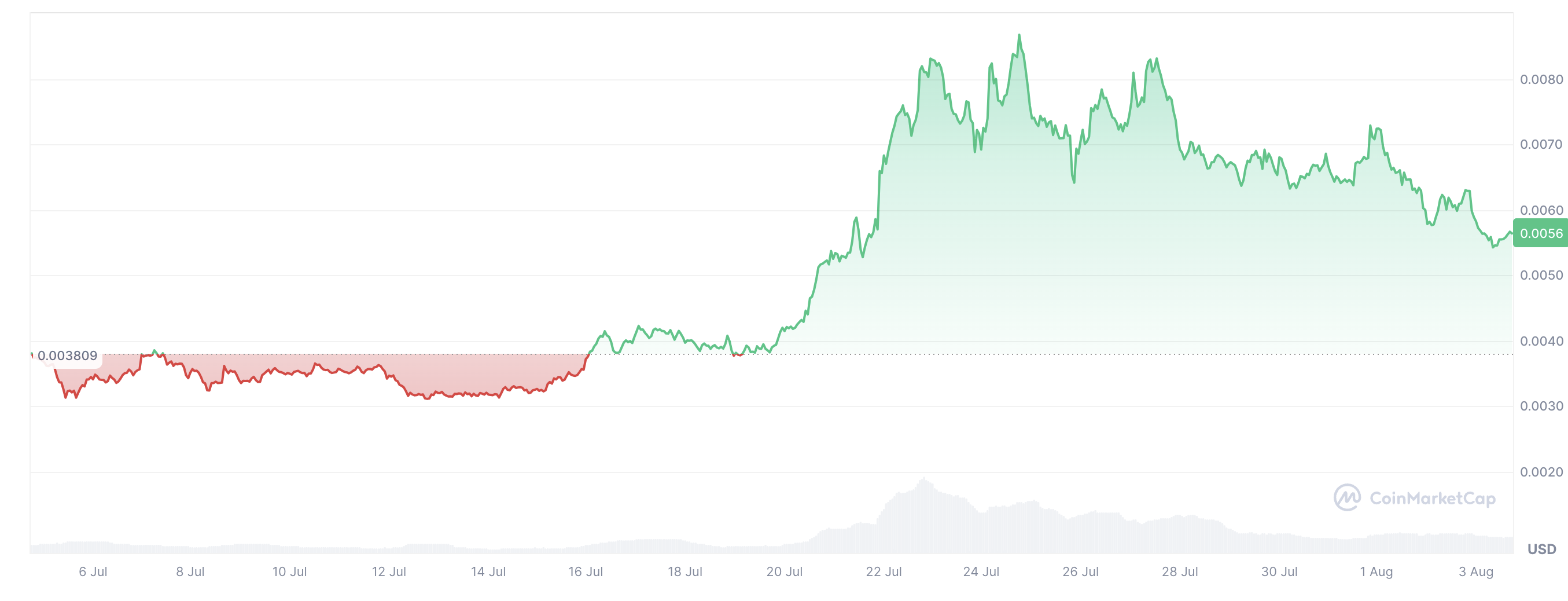Consider the chart of Dogecoin over the period of July 2024. DOGE has a market cap of over $16 Billion, which gives it stability though its a meme coin.