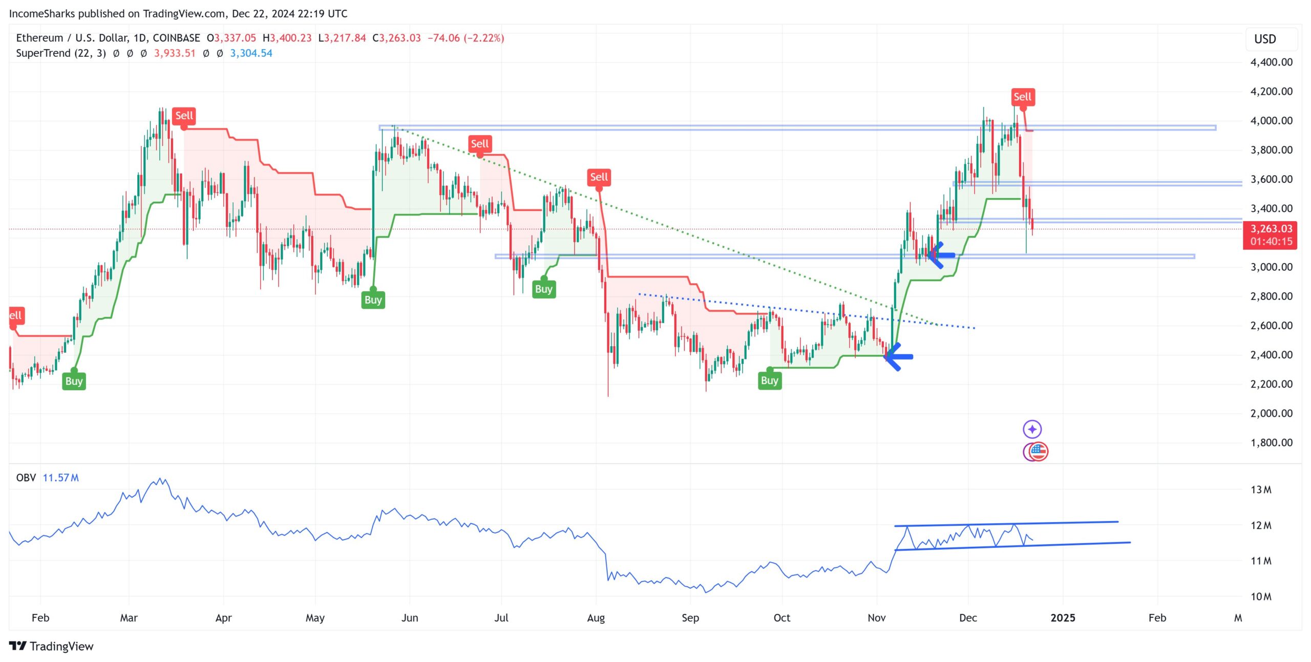 This setup could provide the momentum needed to surpass the $4,000 resistance and aim for a $10,000 target by May. A breakout is anticipated by the end of January, though a retest of the $3,000 level remains a possibility before the rally takes off, he noted.